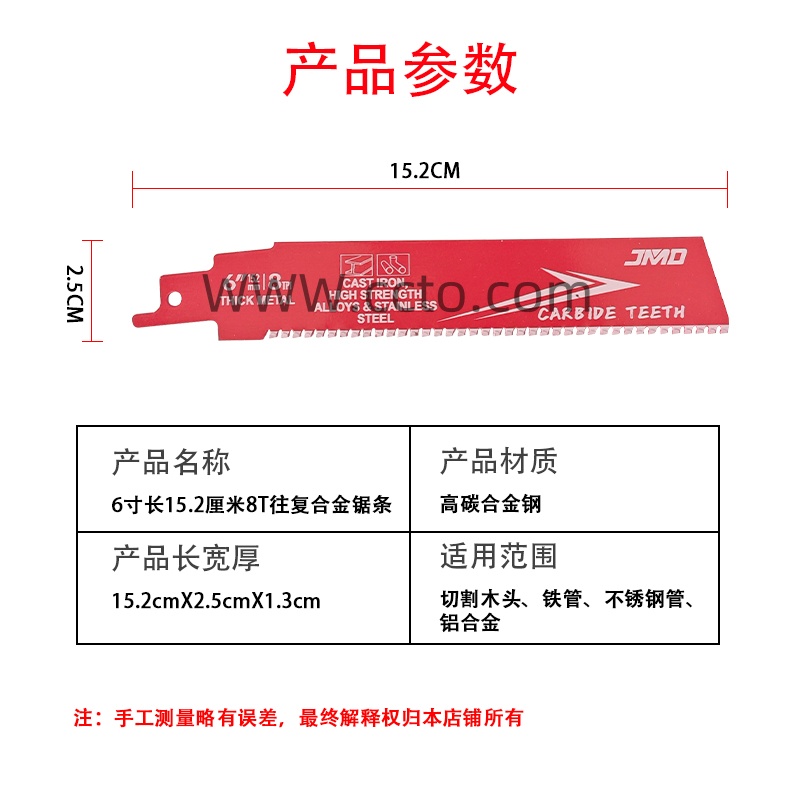 2号6寸长15.2厘米8T往复合金锯条