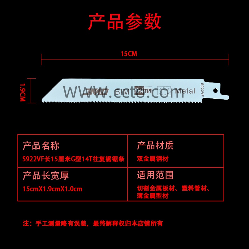20号S922VF长15厘米G型14T往复锯锯条