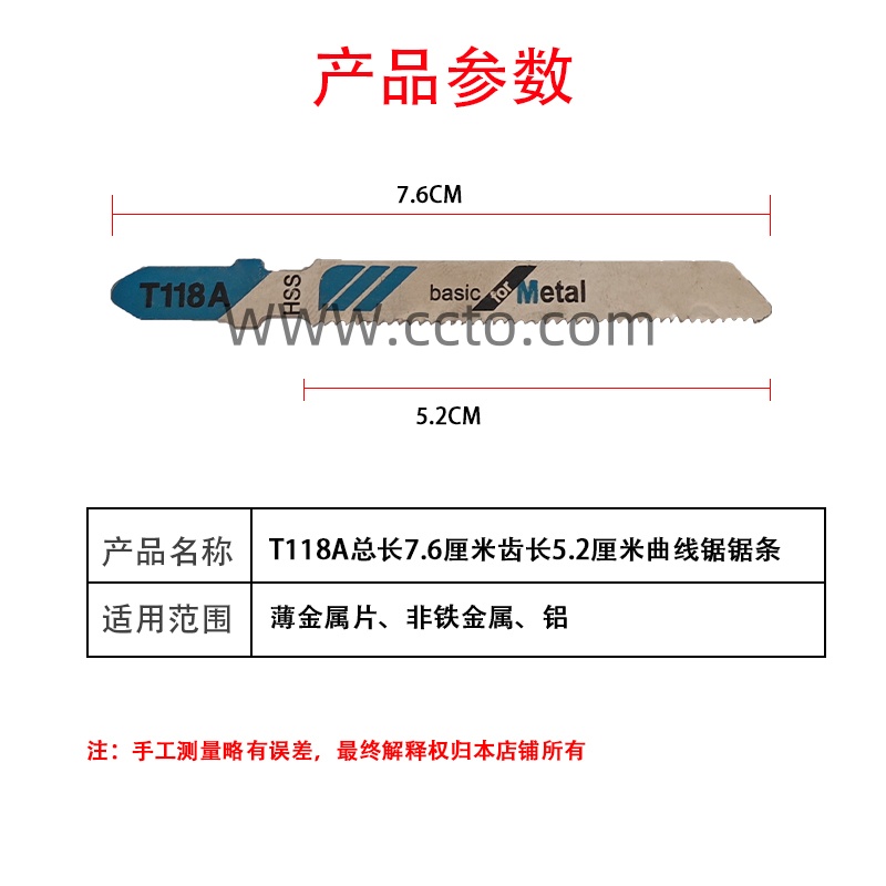 30号T118A总长7.6厘米齿长5.2厘米曲线锯锯条