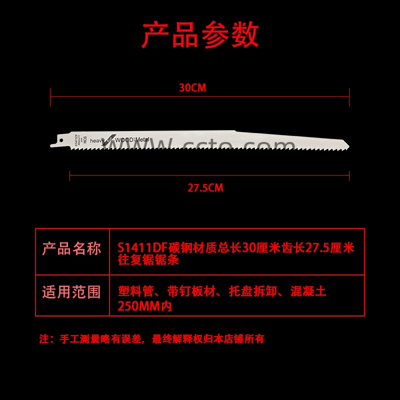 46号S1411DF碳钢材质总长30厘米齿长27.5厘米往复锯锯条