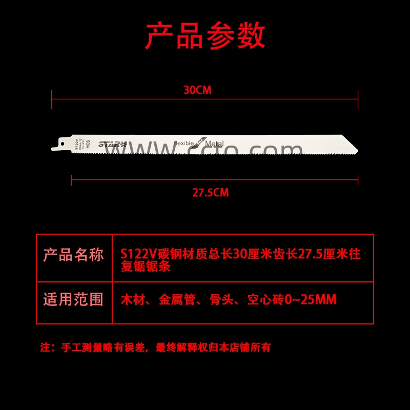 47号S122V碳钢材质总长30厘米齿长27.5厘米往复锯锯条