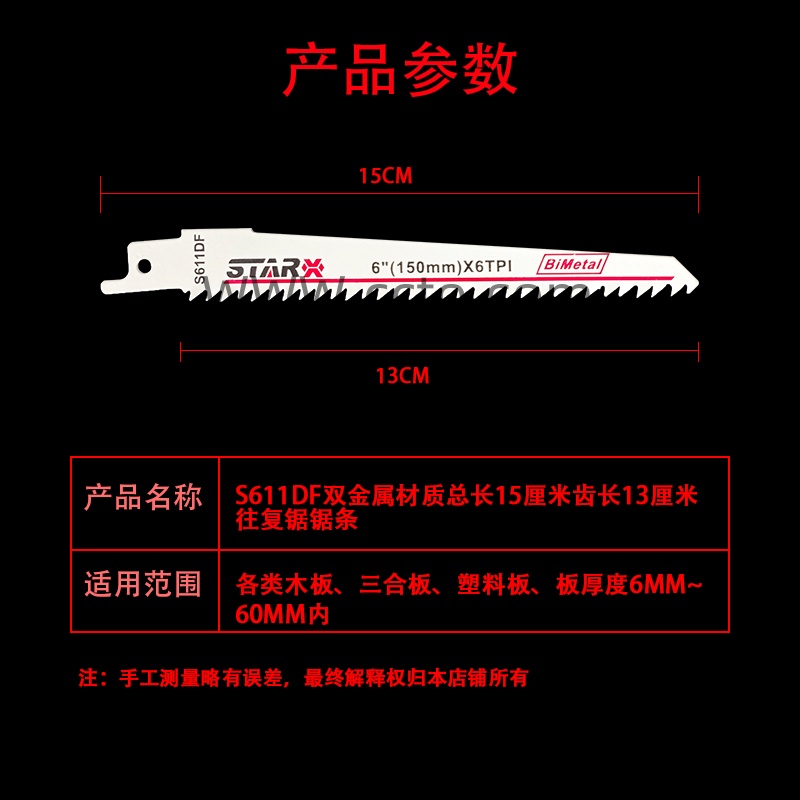 49号S611DF双金属材质总长15厘米齿长13厘米往复锯锯条