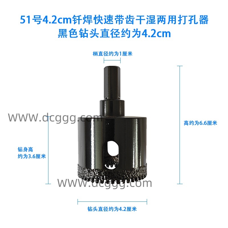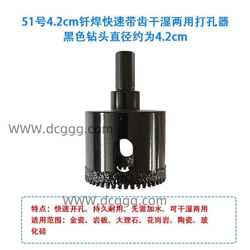 51号4.2cm钎焊快速带齿干湿两用打孔器黑色钻头直径约为4.2cm