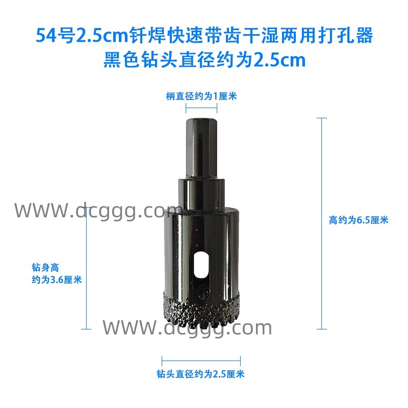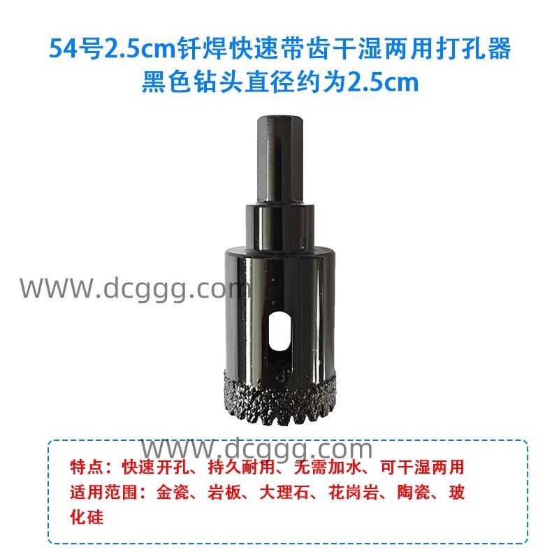 54号2.5cm钎焊快速带齿干湿两用打孔器黑色钻头直径约为2.5cm