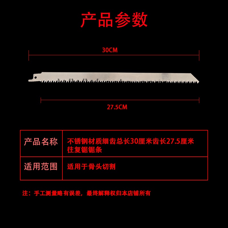 56号不锈钢材质细齿总长30厘米齿长27.5厘米往复锯锯条