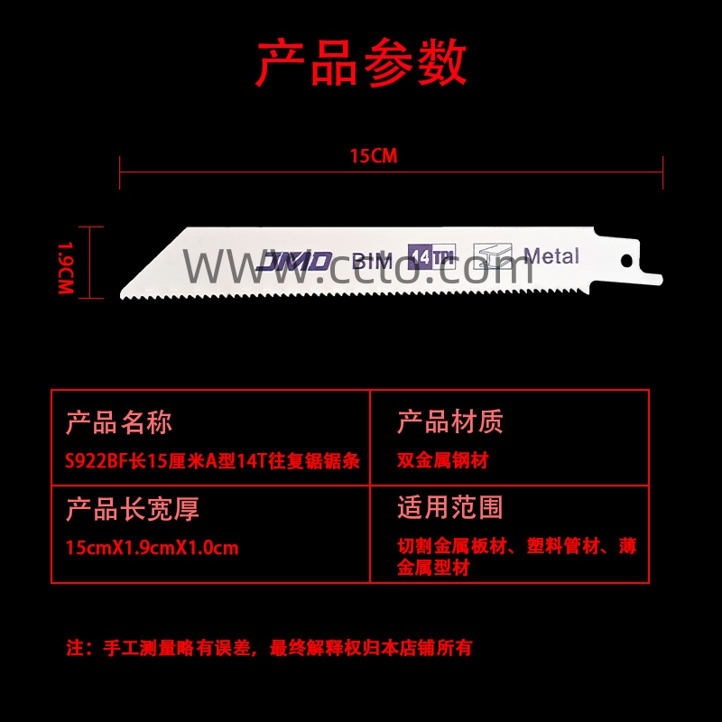 6号 S922BF长15厘米A型14T往复锯锯条