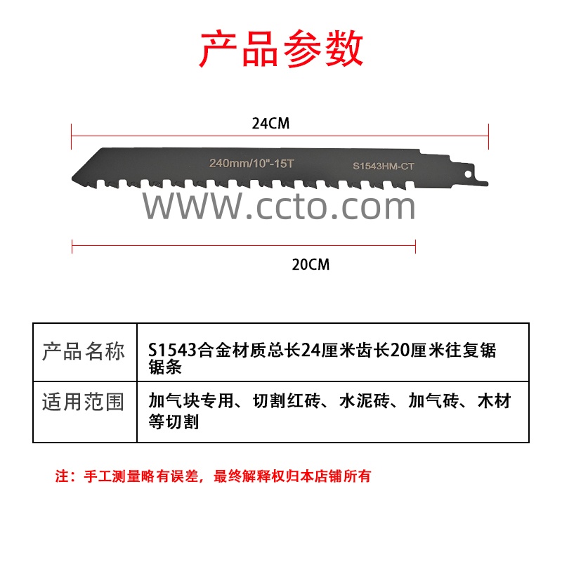 63号S1543合金材质总长24厘米齿长20厘米往复锯锯条