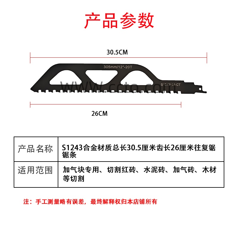 65号S1243合金材质总长30.5厘米齿长26厘米往复锯锯条