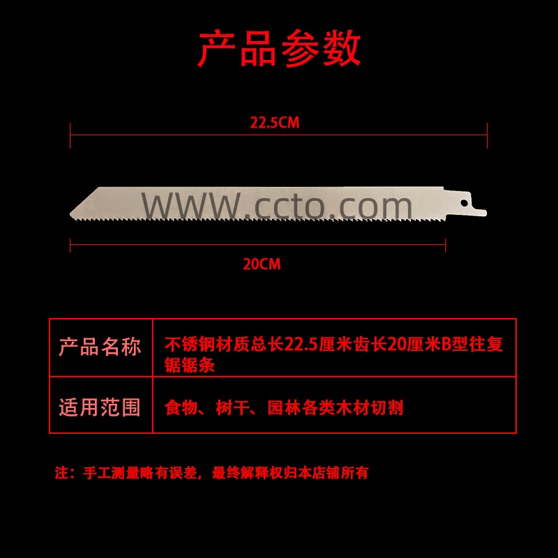 77号不锈钢材质总长22.5厘米齿长20厘米B型往复锯锯条