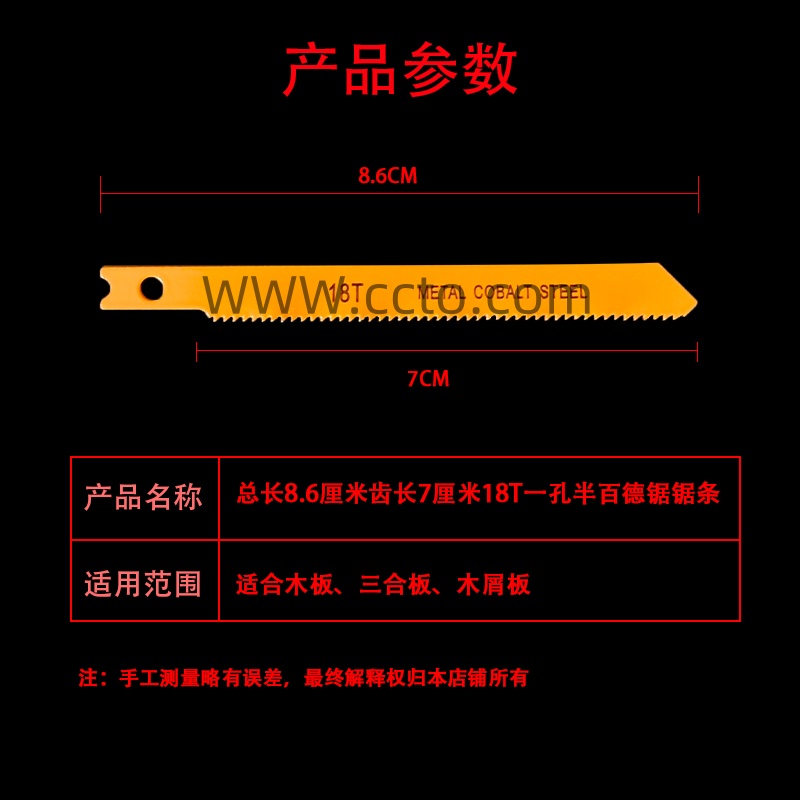 83号总长8.6厘米齿长7厘米18T一孔半百德锯锯条